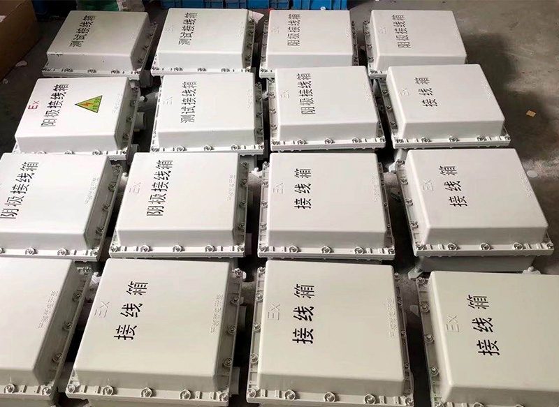 防爆接線箱:我公司根據(jù)在陰極保護(hù)工程中針對(duì)多條電纜匯流、銜接等復(fù)式接點(diǎn)自主設(shè)計(jì)的一款端子特配箱體,在石油、化工等企業(yè)單位爆炸性環(huán)境工程中得到了普遍推廣和應(yīng)用。適用在防爆電氣設(shè)備進(jìn)出線連接或鋼管布線彎曲難度較大的場(chǎng)所連接之用; 具有耐燃、耐油、耐腐蝕、耐老化撓性良好,結(jié)構(gòu)牢固等優(yōu)點(diǎn);可根據(jù)用戶要求特制。