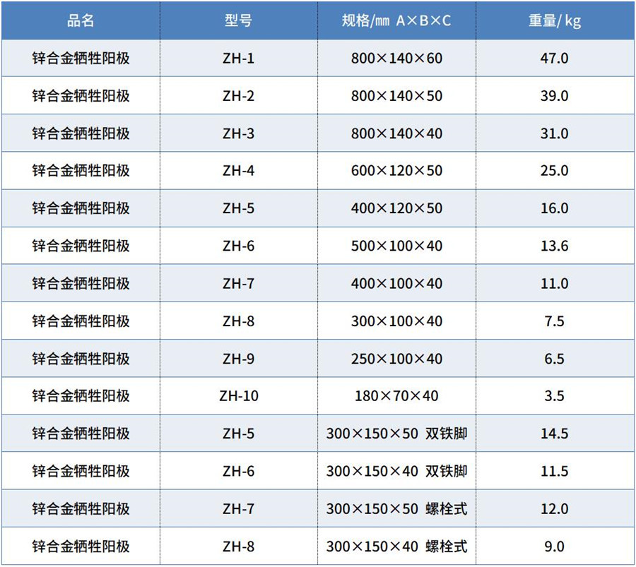 埋地管線,儲(chǔ)罐外壁及其其他地下金屬結(jié)構(gòu)常用鋅合金犧牲陽(yáng)極型號(hào)規(guī)格