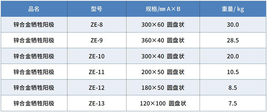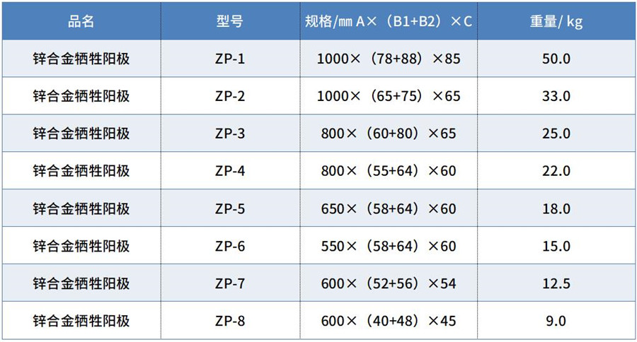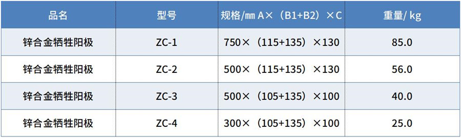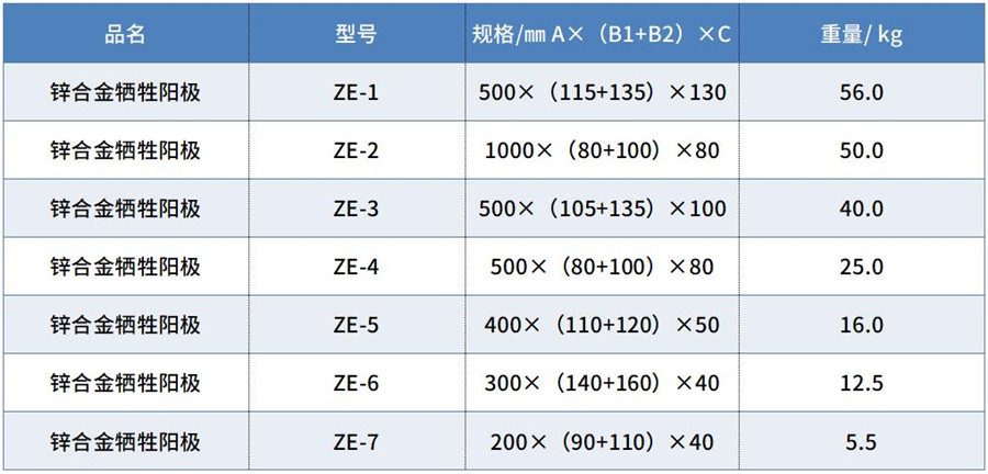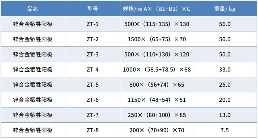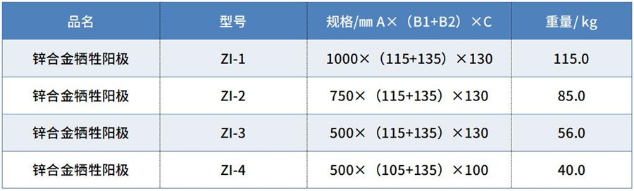 儲(chǔ)罐內(nèi)常用鋅合金犧牲陽(yáng)極型號(hào)規(guī)格