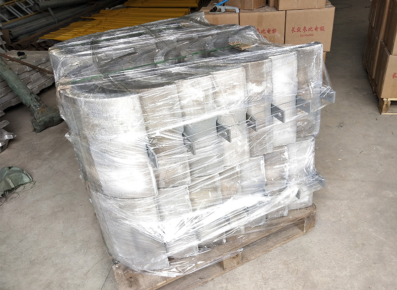 我公司按照GB/T 4948-2002研發(fā)生產(chǎn)的鋁合金犧牲陽極(簡稱:鋁陽極)適于海水介質(zhì)中的船舶、機械設(shè)備、壓載水艙、儲罐內(nèi)壁、濱海設(shè)施、海底管道、碼頭鋼樁、海洋平臺、電纜等設(shè)施金屬防腐蝕的陰極保護。