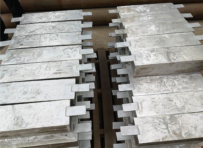 鋁-鋅-銦系合金犧牲陽極適于海水介質(zhì)中的船舶、機械設(shè)備、壓載水艙、儲罐內(nèi)壁、濱海設(shè)施、海底管道、碼頭鋼樁、海洋平臺、電纜等設(shè)施金屬防腐蝕的陰極保護。