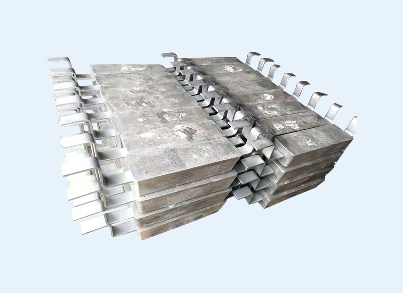鋁-鋅-銦系合金犧牲陽極適于海水介質(zhì)中的船舶、機械設(shè)備、壓載水艙、儲罐內(nèi)壁、濱海設(shè)施、海底管道、碼頭鋼樁、海洋平臺、電纜等設(shè)施金屬防腐蝕的陰極保護(hù)。