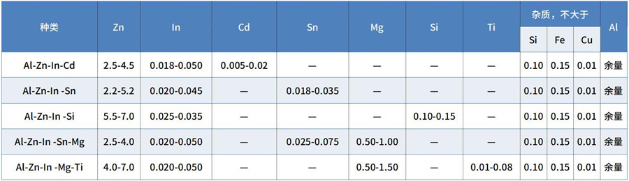 海水冷卻水系統(tǒng)常用鋁合金犧牲陽極