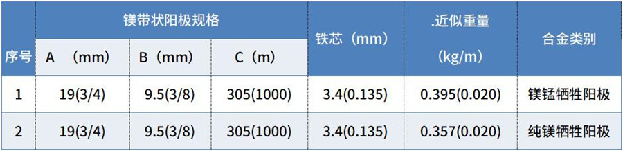 我公司的鎂帶犧牲陽(yáng)極使用優(yōu)質(zhì)高純鎂生產(chǎn),產(chǎn)品符合 ASTM97-98 標(biāo)準(zhǔn),采用特定的工藝擠壓而成,鎂帶犧牲陽(yáng)極(簡(jiǎn)稱(chēng):鎂帶陽(yáng)極)具有極好的電化學(xué)性能,鎂帶狀陽(yáng)極的形狀扁平,長(zhǎng)度可以調(diào)節(jié),容易彎曲。本產(chǎn)品用于高電阻率環(huán)境,套管內(nèi)管道的保護(hù),管道臨時(shí)陰極保護(hù)、儲(chǔ)罐及管網(wǎng)的保護(hù)、防強(qiáng)電干擾的接地柵。